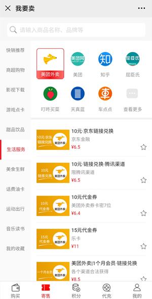 可以转让的券码也比较多,比如:星巴克、肯德基、麦当劳、必胜客、汉堡王、哈根达斯、DQ冰淇淋、美团外卖、周黑鸭、元祖食品、百果园、COCO都可、COSTA咖、腾讯视频、爱奇艺、优酷视频、芒果TV、搜狐视频、PPTV视频、腾讯体育、百度网盘、迅雷、网易云音乐、QQ音乐、喜马拉雅、酷我音乐、淘票票、京东E卡、京东钢镚、亚马逊、网易严选、苏宁、天猫超市、唯品会、万里通、本来生活、屈臣氏、沃尔玛、神州专车、曹操专车、车点点、E代驾、滴滴出行、携程、去哪儿、途牛、e袋洗、中石油加油卡等等。